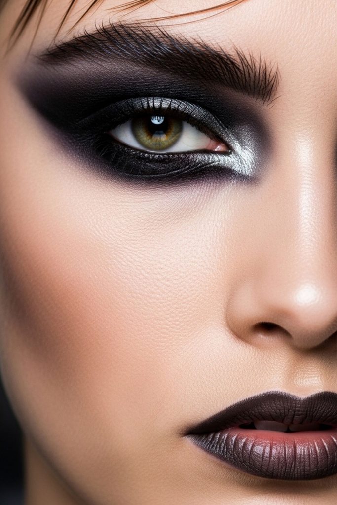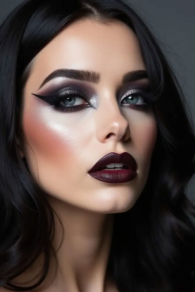 At its core, whimsy goth makeup focuses on balance. Deep shades like plum, charcoal, and black are often paired with lighter, glowing elements such as dewy skin, soft blush, or subtle shimmer. The result is a look that feels less harsh and more magical. Skin is usually kept natural or radiant, creating a soft base that contrasts beautifully with darker eyes or lips.