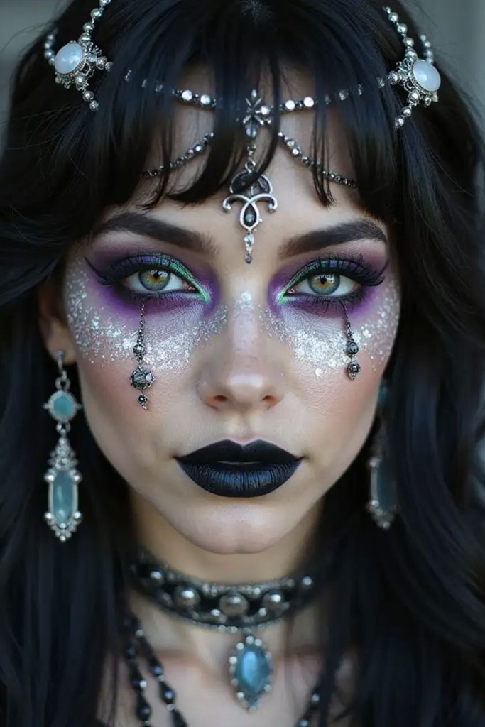 Overall, whimsy goth makeup is about expressing a softer side of gothic beauty. It’s perfect for anyone who loves dark aesthetics but also wants a touch of romance, creativity, and individuality in their look.