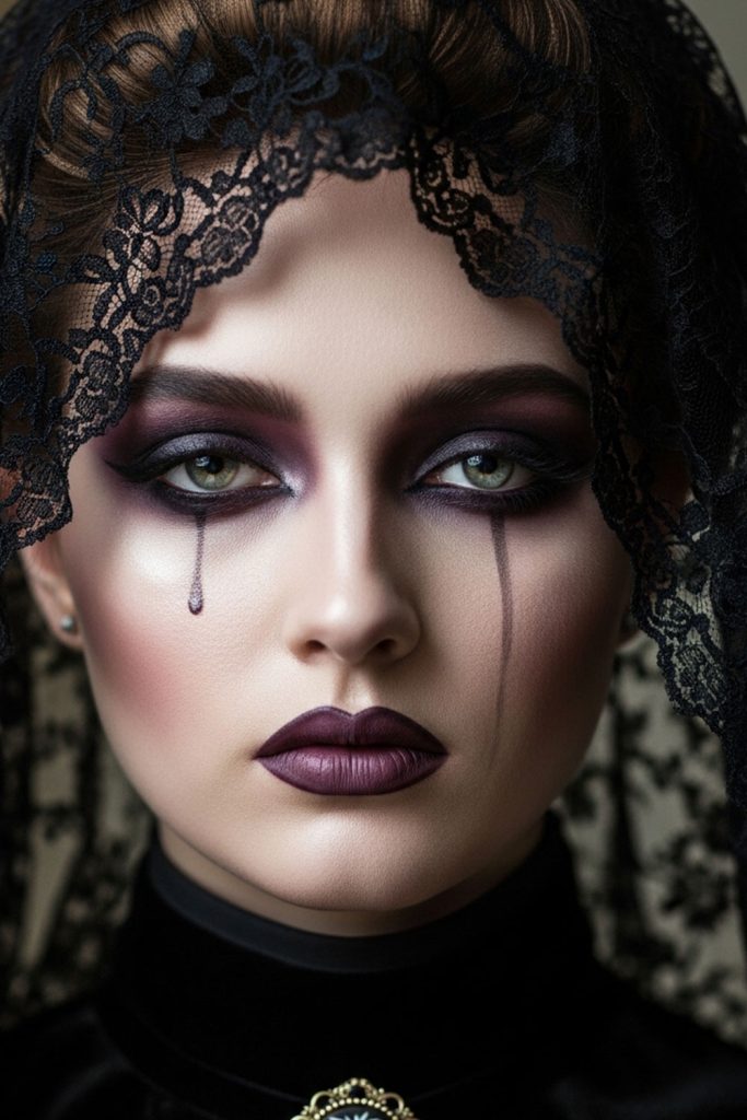 Lips in whimsy goth makeup range from deep berries and muted reds to glossy nude tones, depending on how bold or subtle you want to go. The key is to keep everything cohesive—nothing should feel too harsh or overpowering.